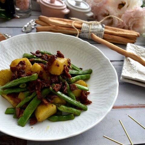 カリカリベーコンがおいしい インゲンとジャガイモのカレー風味 暮らしニスタ
