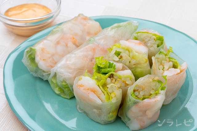 スイートチリマヨで食べるエビとモヤシの生春巻きのレシピ ソラレピ