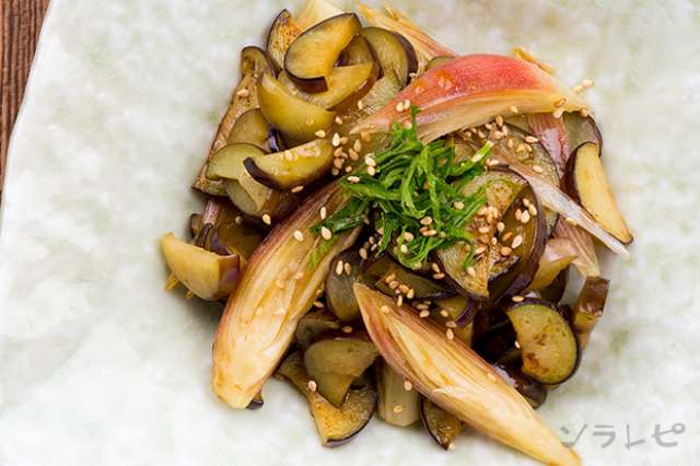 ゴマぽん酢でごくうまミョウガと焼きナスの和え物のレシピ ソラレピ