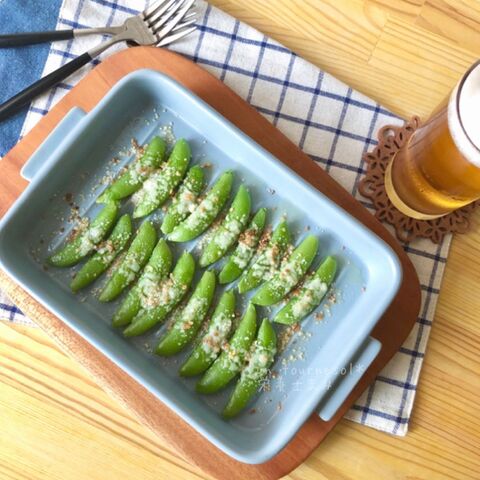 ストレス解消に スナップえんどうのガーリックチーズ焼き 暮らしニスタ
