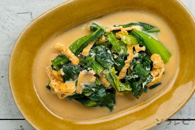 小松菜と油揚げの甘辛卵とじ 料理レシピ集金沢から