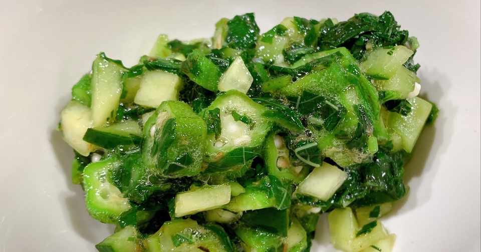ウチ食 モロヘイヤとオクラのめんつゆ和え マオマオ カンボジア