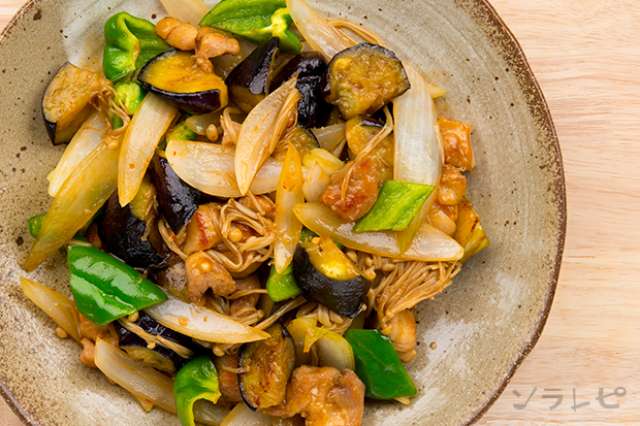 野菜たっぷりナスと鶏肉のピリ辛炒めのレシピ ソラレピ