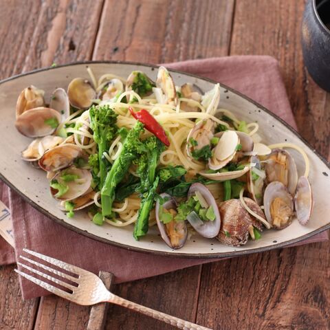 アサリと菜の花のぺペロンチーニのレシピ 作り方 献立 味の素パーク の料理 レシピサイト レシピ大百科 スパゲッティや菜の花を使った料理