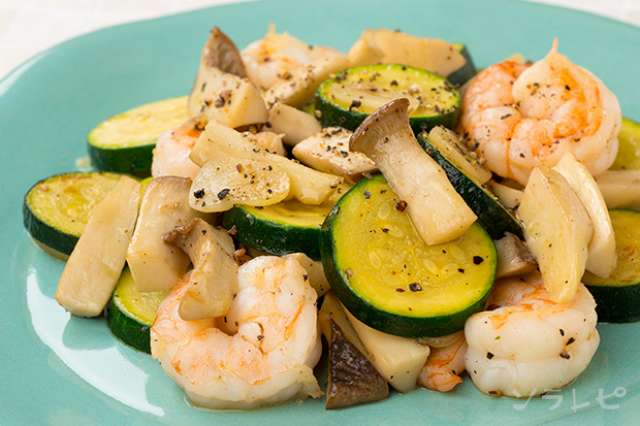手軽に蒸し焼きエビとズッキーニのソテーのレシピ ソラレピ