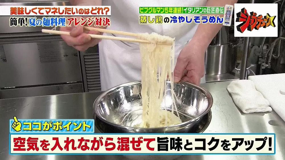 ジョブチューン コルテジーア江部シェフ そうめん 蒸し鶏の冷やしそうめん のレシピ お店を紹介 8 8放送 Activi Tv