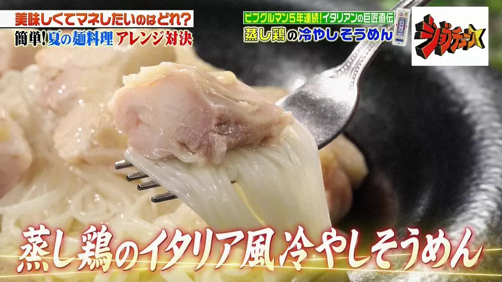 ジョブチューン 蒸し鶏のイタリア風冷やしそうめんの作り方 夏の麺料理アレンジレシピ 8月8日 オーサムスタイル