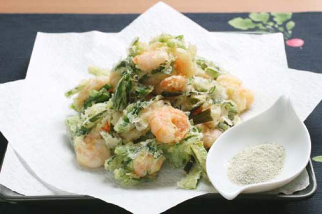 えびとにらのかき揚げこんぶ塩レシピ 素材力だし