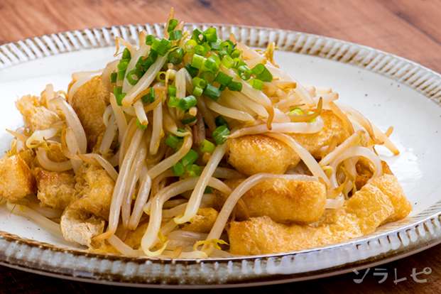 油いらずでヘルシーもやしと油揚げのポン酢炒めのレシピ ソラレピ