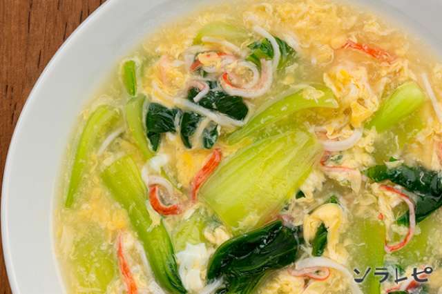 チンゲン菜とカニカマの卵生姜スープ 作り方 レシピ クラシル
