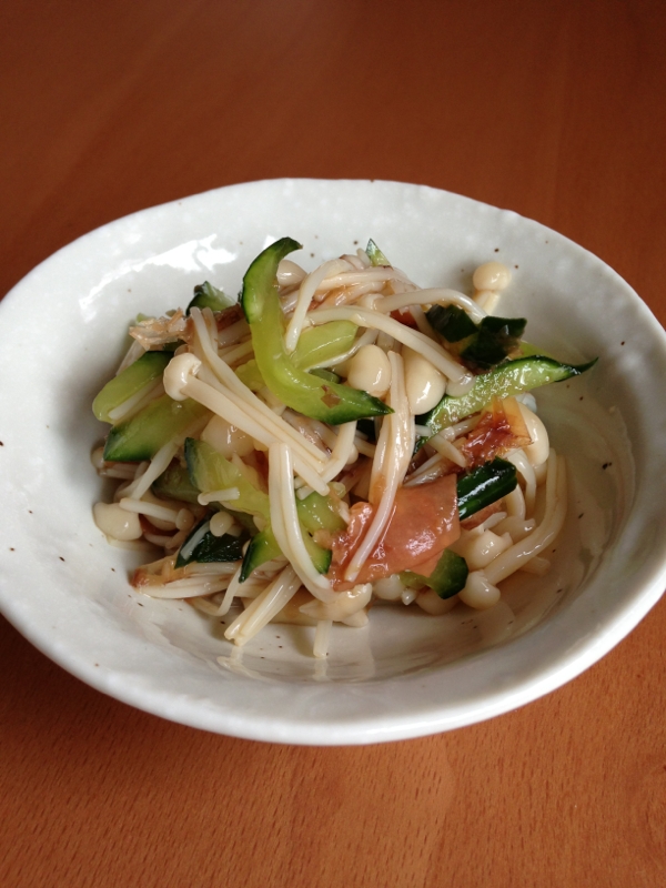 きゅうりとえのきのおかか柚子酢あえ わたしのレシピ