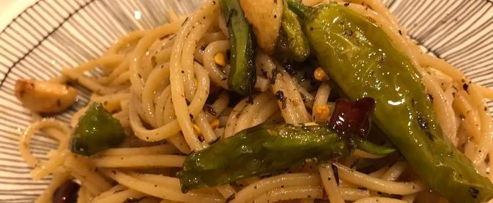 ししとうとキノコの和風パスタ イタチの簡単料理レシピとパスタ