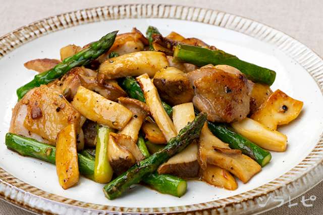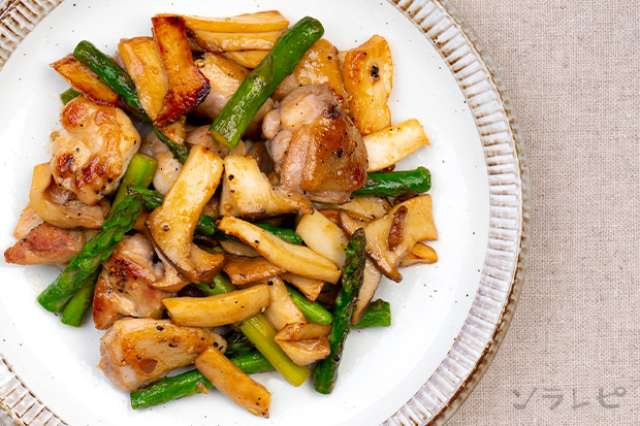 ガーリックバターが食欲をそそるアスパラとエリンギのガリバタチキンのレシピ ソラレピ