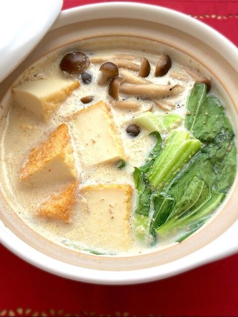 チンゲン菜と厚揚げのゴマ豆乳鍋 暮らしニスタ