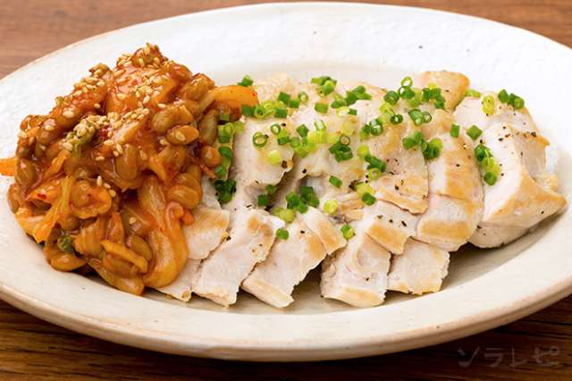 たんぱく質をたくさんとろう 鶏ムネ肉納豆キムチ添えのレシピ ソラレピ