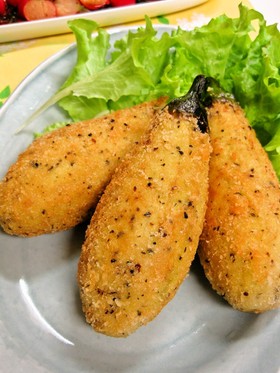 ナスとピーマンの肉づめチーズフライ レシピ とれ蔵kitchen Jaいるま野