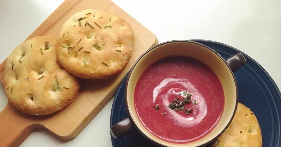 簡単フォカッチャとビーツのスープの作り方 Focaccia And Beetroot Soup さや日記 Note