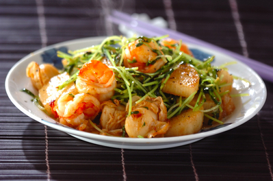 豆苗とエビのバターじょうゆ炒めのレシピ 作り方 E レシピ 料理のプロが作る簡単レシピ