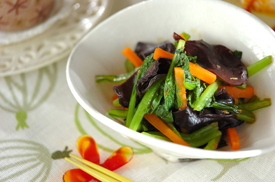 国産きくらげと小松菜のふんわり中華炒め 地の塩社
