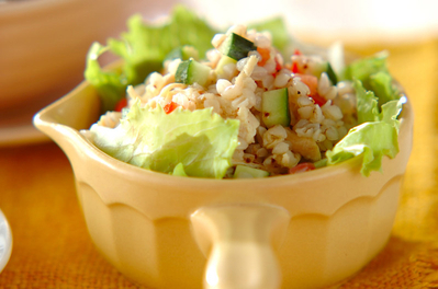 蕎麦米とひじきと彩り野菜の和風ライスサラダ レシピ 作り方 By 嵯峨 恭也 楽天レシピ